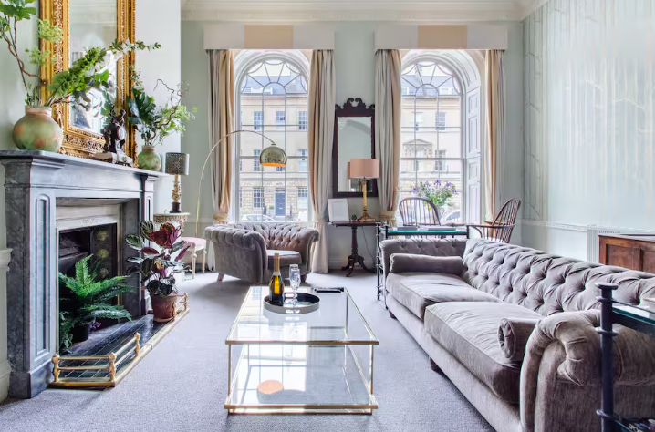 • Lounge on the classic Chesterfield sofa and bask in the sunlight streaming through grand arched windows in this beautifully preserved Georgian retreat. Built in 1789, the apartment blends period character with modern comfort — featuring original details complemented by a charming, botanical-inspired kitchen. Check more.