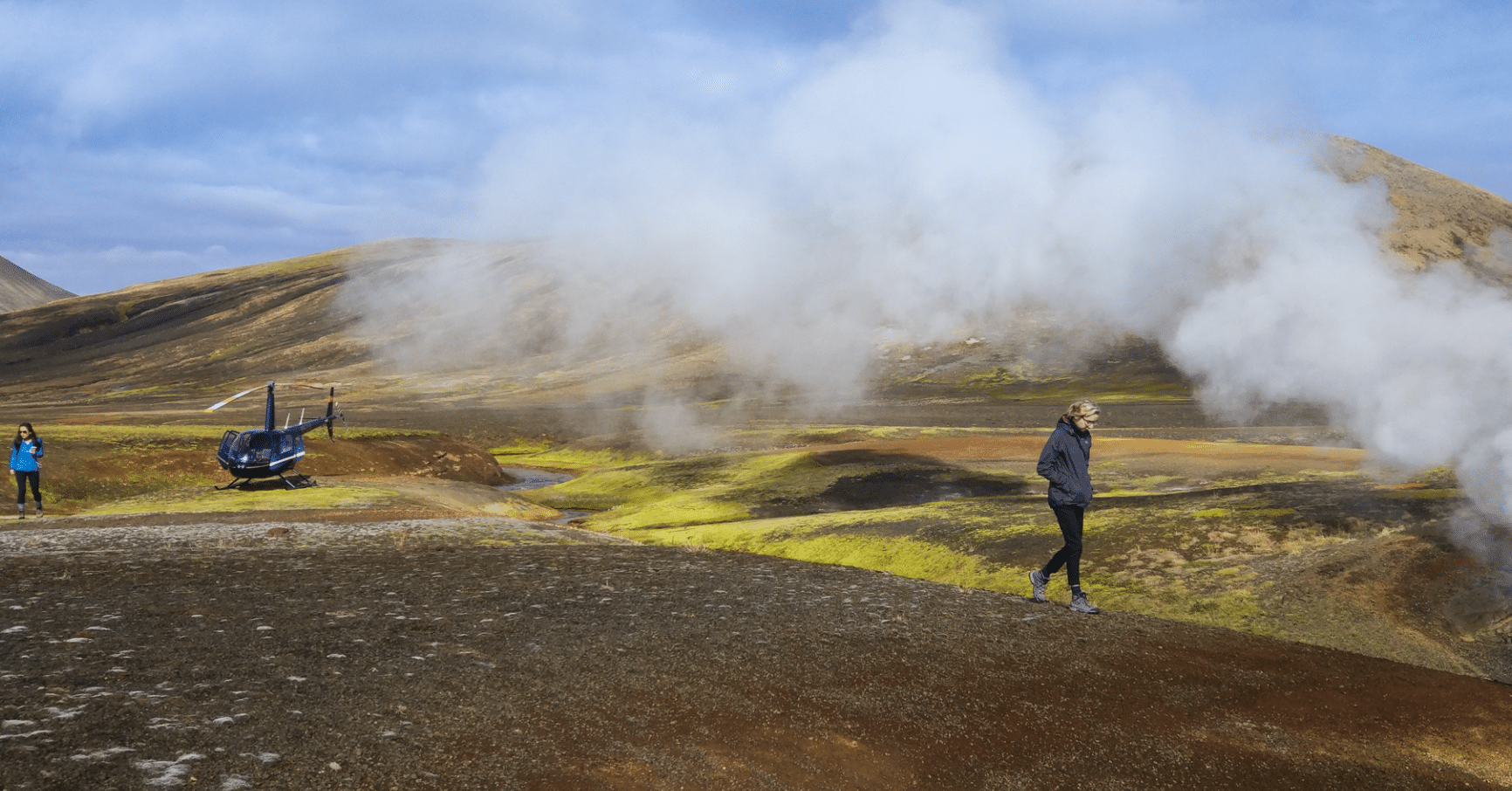 We will do one stopover along the way, and you can choose from a landing at Háifoss, at a geothermal site, or a glacier landing.