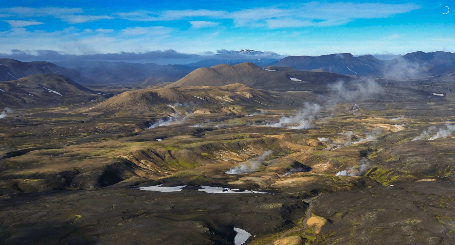The second option is going to Langjökull glacier, on the way there, we will pass the highest waterfall in Iceland, Glymur. From the glacier, we will travel to Hveravellir geothermal area and the colorful mountains of Kerlingafjöll. As we head back towards Reykjavík, we will visit the beautiful waterfall Háifoss and then end with flying over Þingvellir National Park to see how the continental rift has an incredible effect on our landscape.