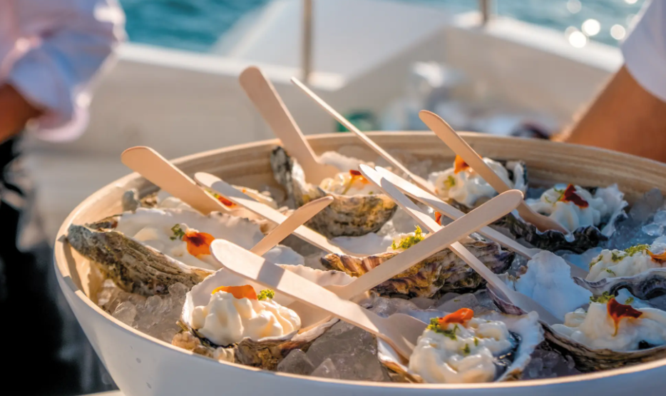Upon request, you can add themed menus such as sushi, seafood, or an oyster tasting. You may also choose to have lunch at one of our beachfront partner restaurants, where regional flavours take centre stage in an exclusive setting.