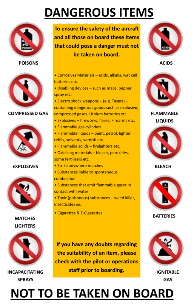 There are many items which are considered to be dangerous and cannot be carried as hand baggage on any flight.